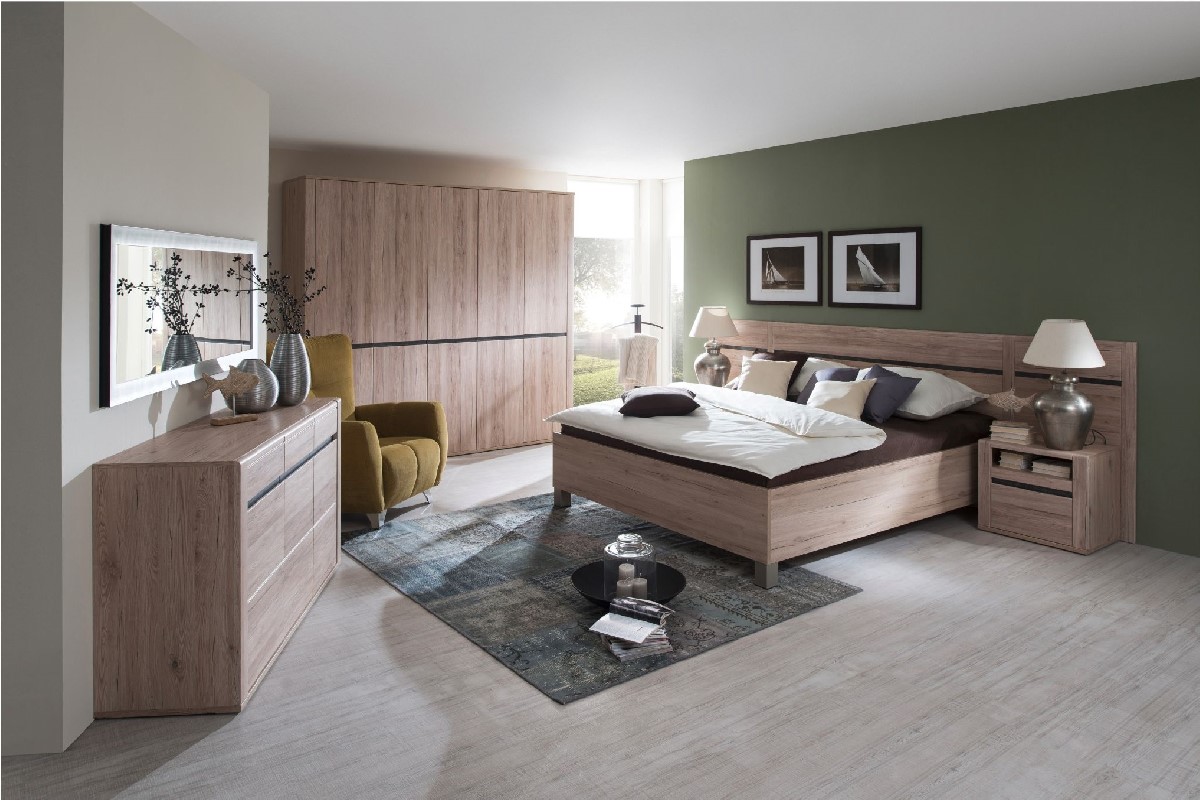 Spalnica Modesto v moderni barvi hrasta San Remo Sand vam pričara toplino v vašo spalnico. Brezročajni sistem omar in komodo z integriranim ročajem v ličnico vrat naredi spalnico Modesto posebno in ji da poseben moderen videz. Izbirate lahko med različnimi elementi in si ustvarite svoj sanjski svet spanja.