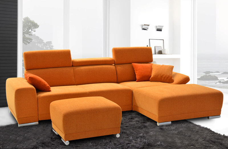 Moderna sedežna garnitura Sione v kotni izvedbi. Funkcija nastavljivih vzglavnikov vam v trenutku ponudi udobje in spremeni videt sedežne garniture. Na voljo več vrst blaga, mikro tkanine in kakovostnega umetnega usnja.